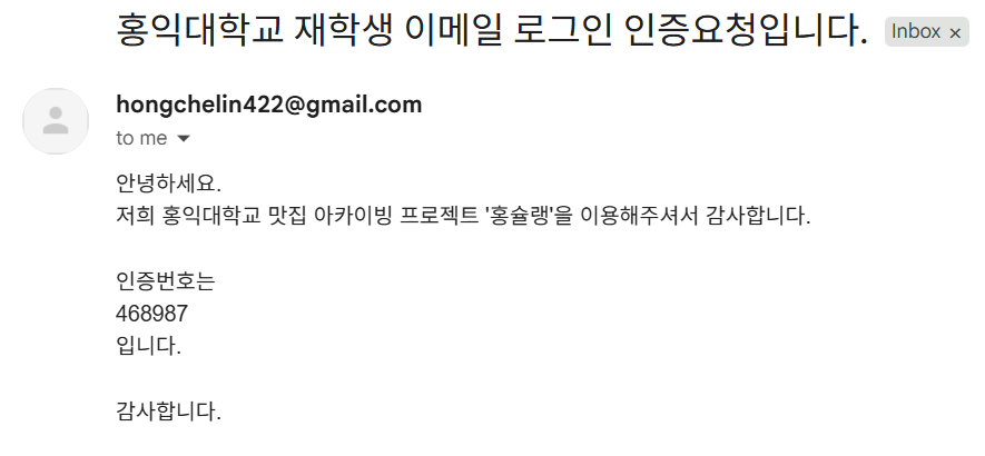 String sub = "홍익대학교 재학생 이메일 로그인 인증요청입니다.";
