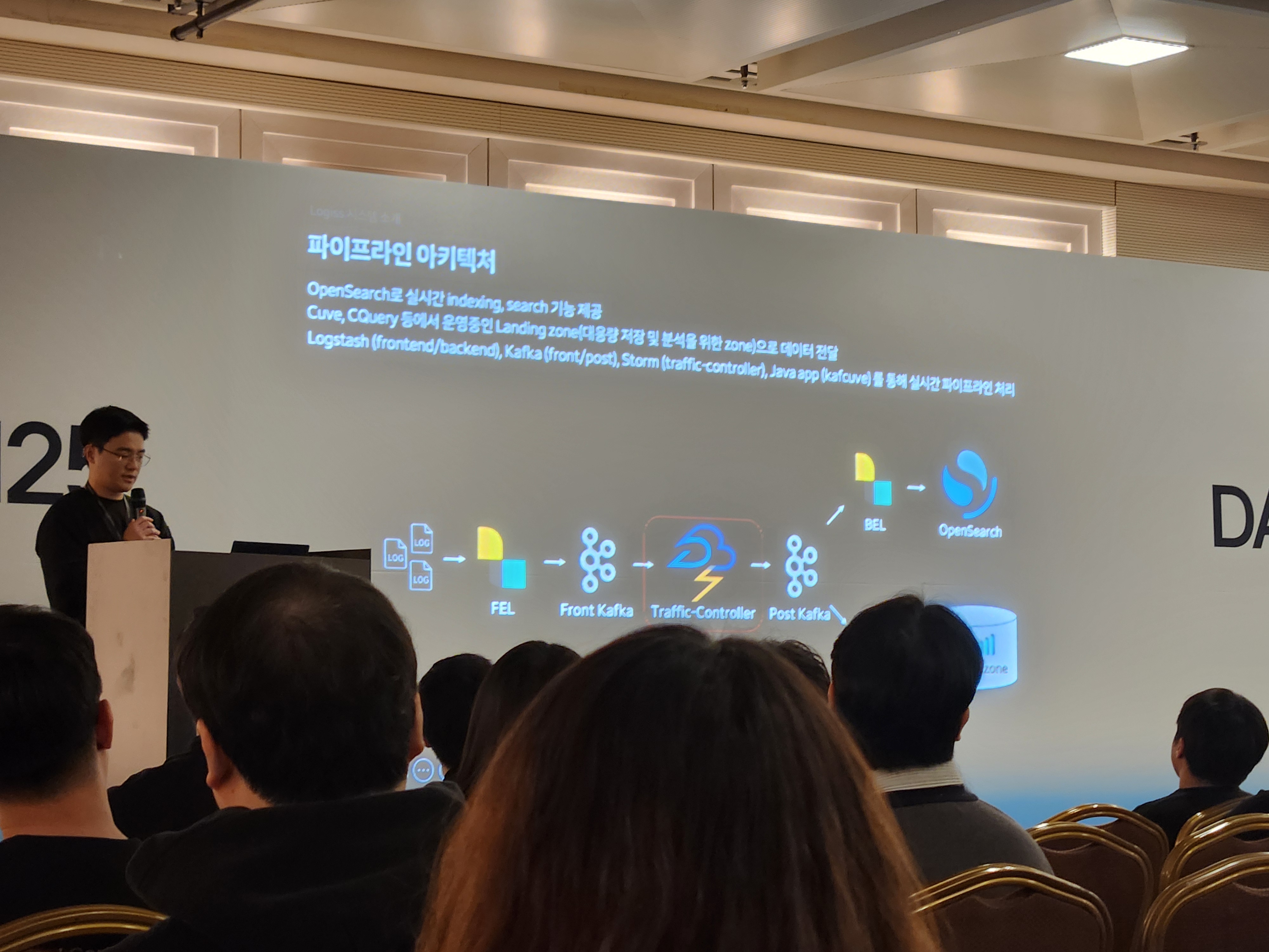 내용은 많이 알아듣지는 못하고, 단일 토폴로지 환경에서 로그를 처리하는 문제점을 다중 토폴로지로 전환하면서 기존의 문제점을 해결하고 로그 수집 및 데이터 처리에서 효율성을 높였다 정도로만 이해했다. 사실 토폴로지니 카프카니 못 알아들은 것이 태반이긴한데.. 뭐 DAN25 세션들은 영상녹화 후 업로드되니까 나중에 관련된 내용들을 배워놓고 다시 영상 돌려보면 좀 더 이해하기 쉽지 않을까
