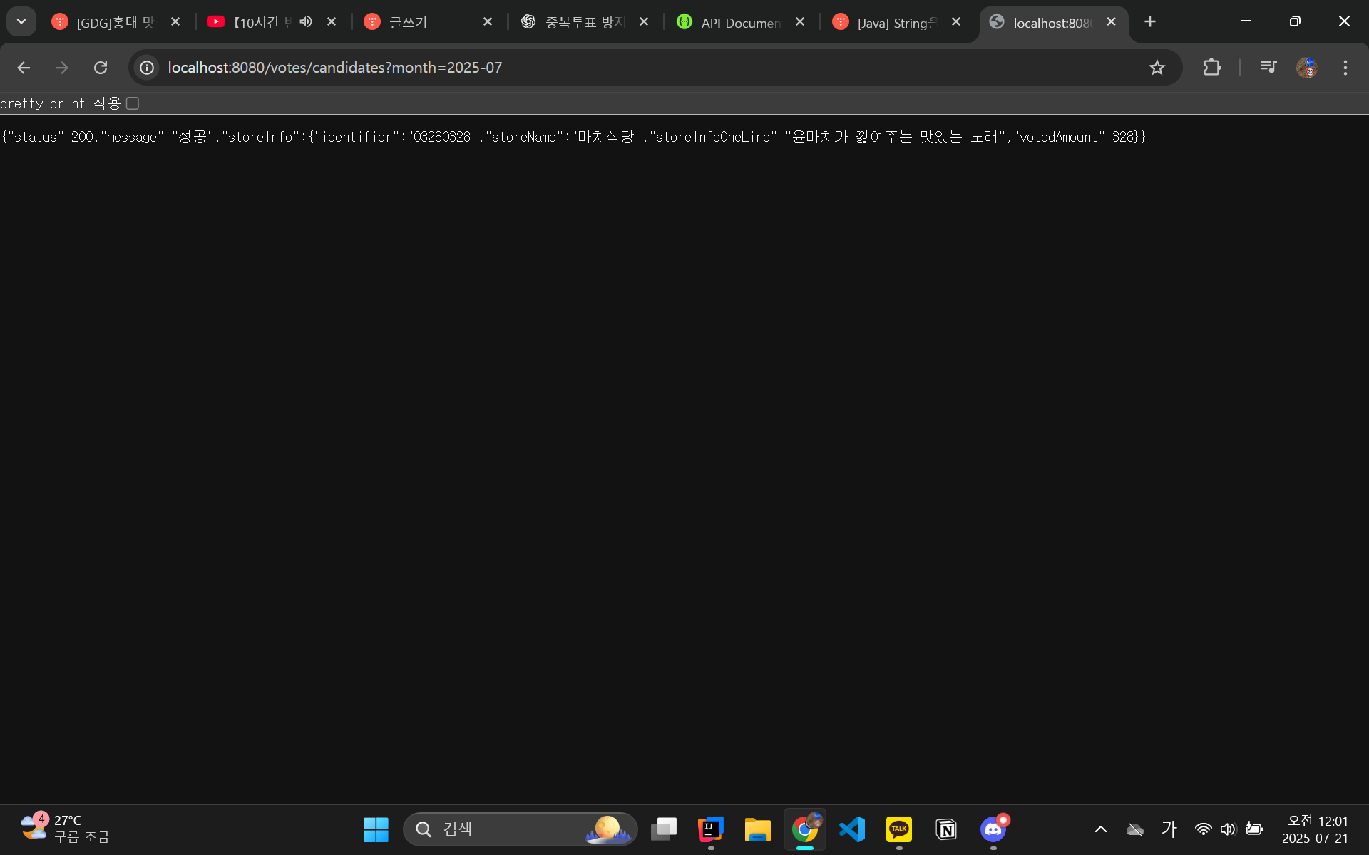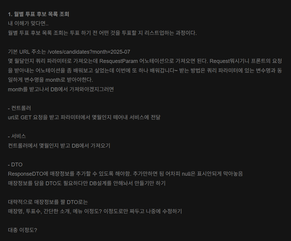 | [GDG]홍대 맛집 아카이빙 프로젝트 #7 - 투표기능 기획 (2) | 2025.07.20 |