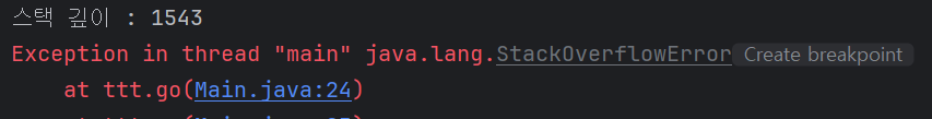 System.out.println("스택 깊이 : " + ttt.gip);