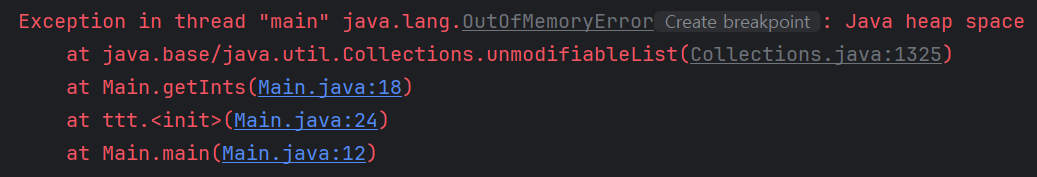 위와 같은 OOME가 발생하게된다. 콜론(:) 이후에 어디서 OOME가 발생했는지 적혀있는데, 바로 힙메모리 (Java heap space)에서 발생했다고 적혀져있다.