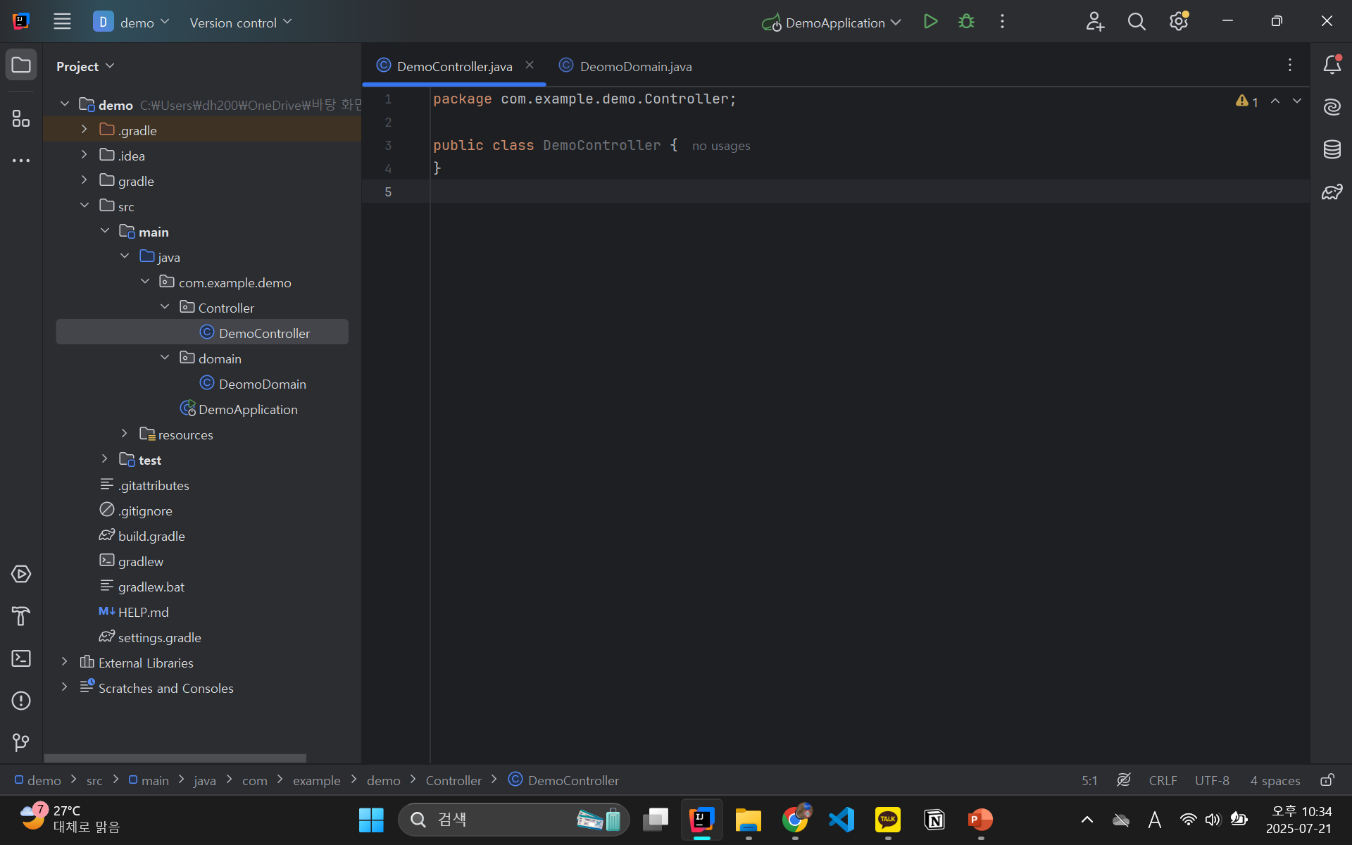 도메인을 공부하기 위해서 컨트롤러와 도메인만 있는 프로젝트를 만들어봤다.