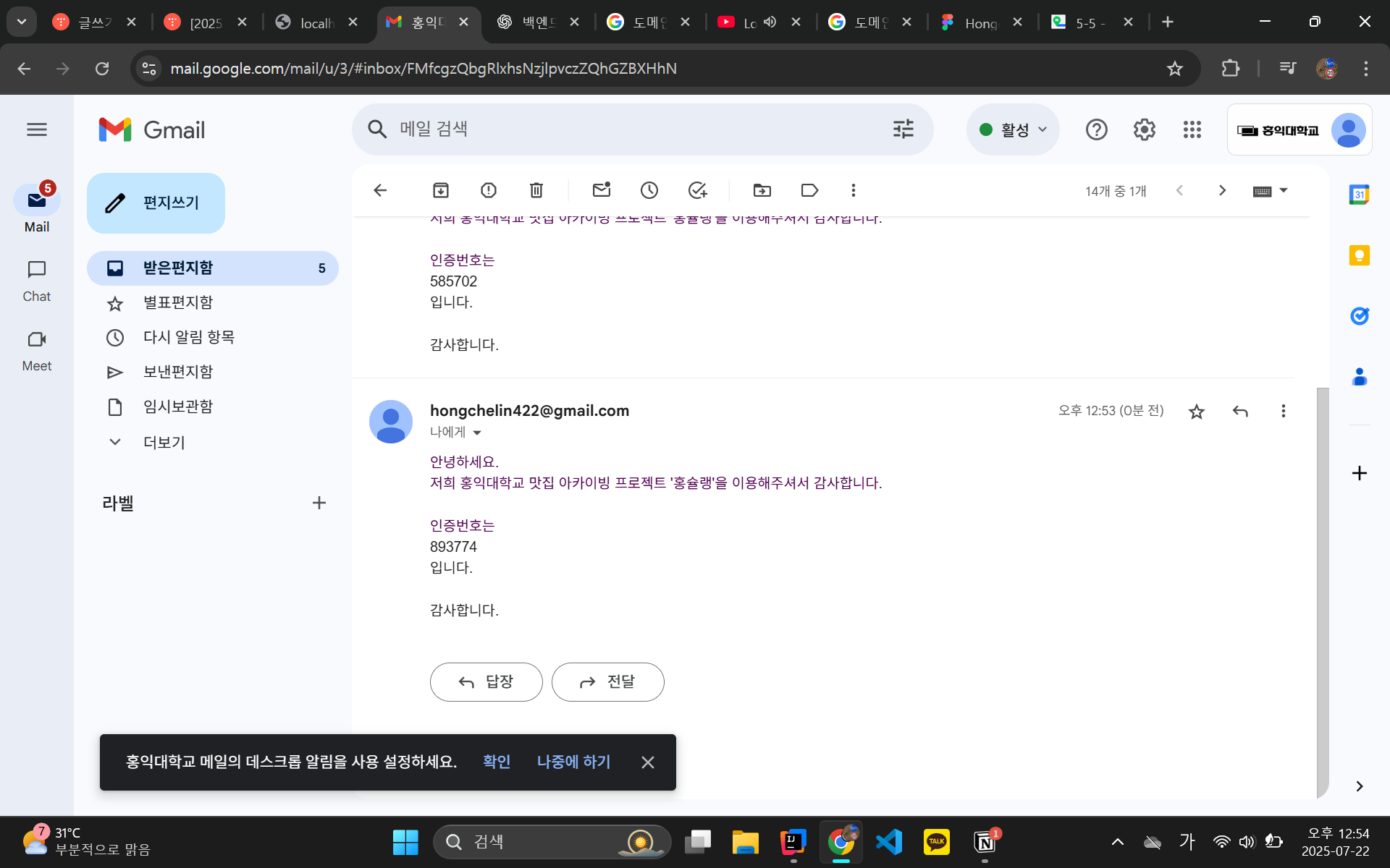 홍익대학교 전용 이메일이 아닐 때