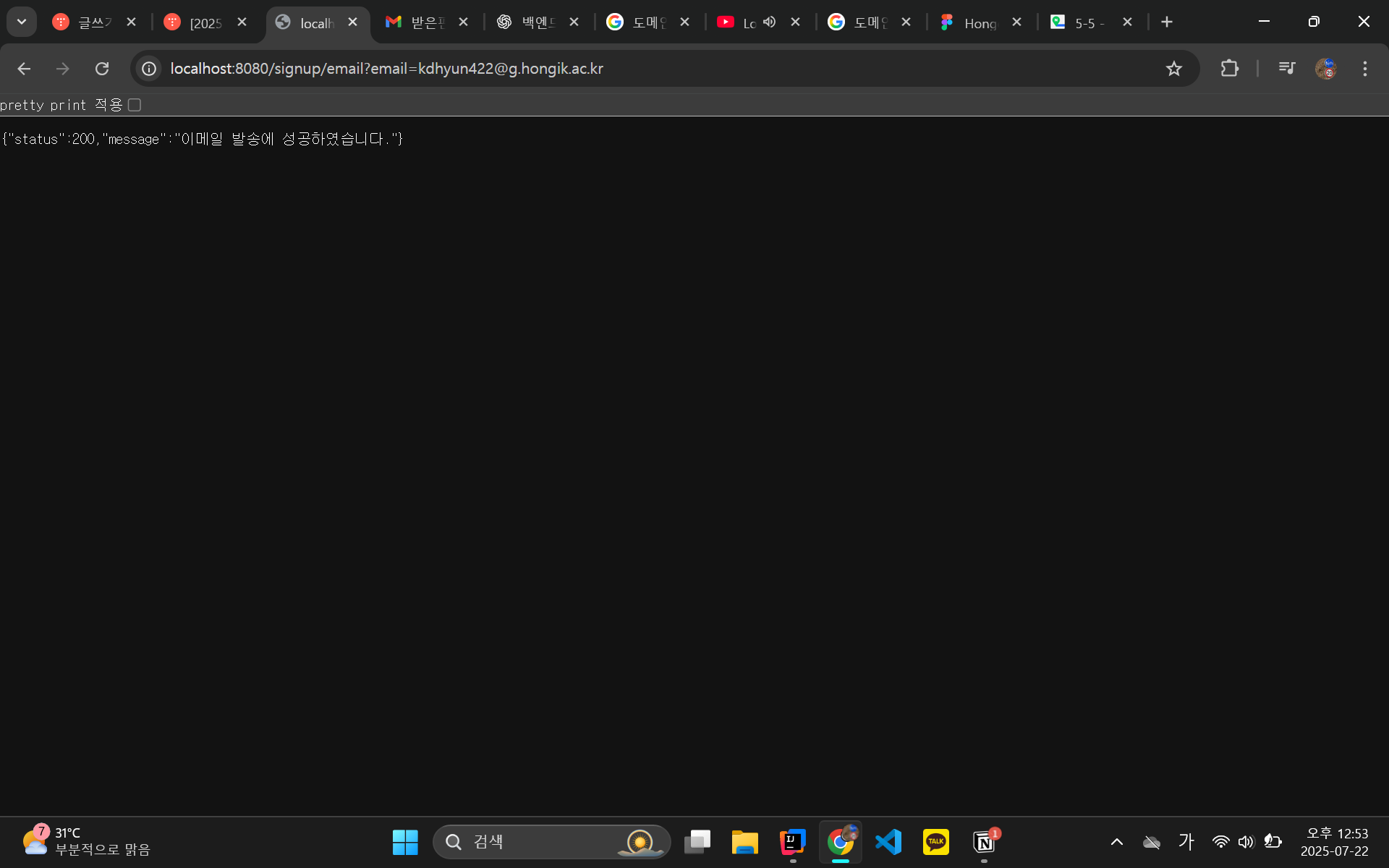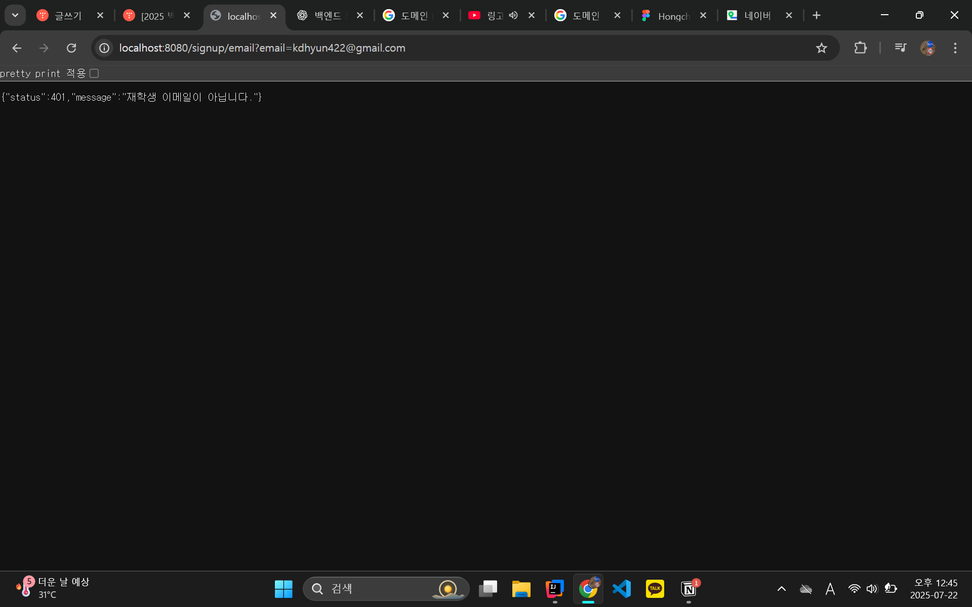 String message = "재학생 이메일이 아닙니다.";