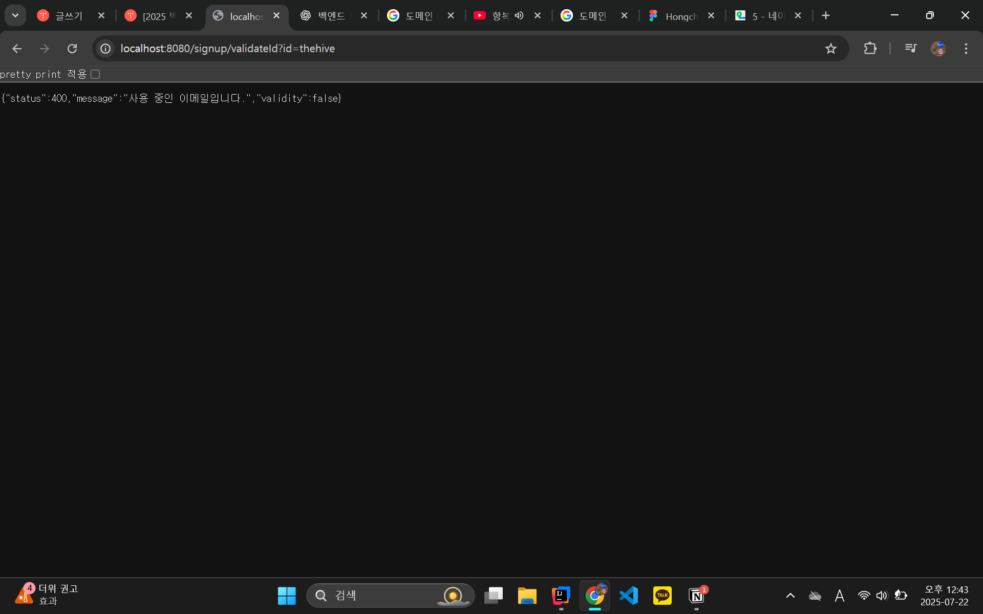 사용 중인 이메일일 때