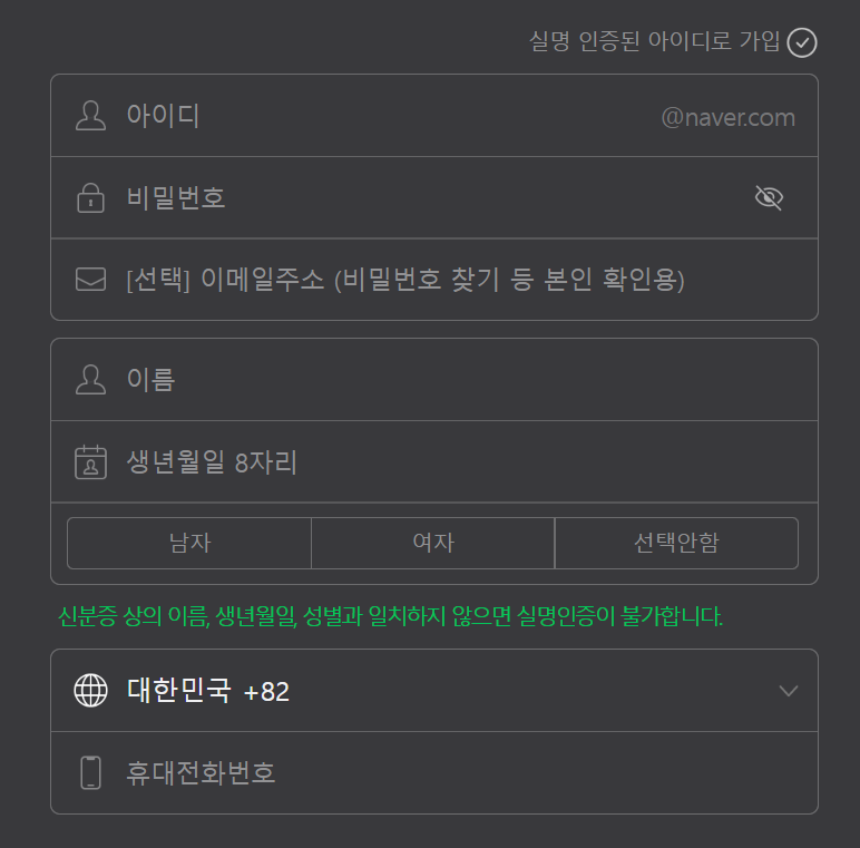네이버가 회원가입 때 받는 정보..