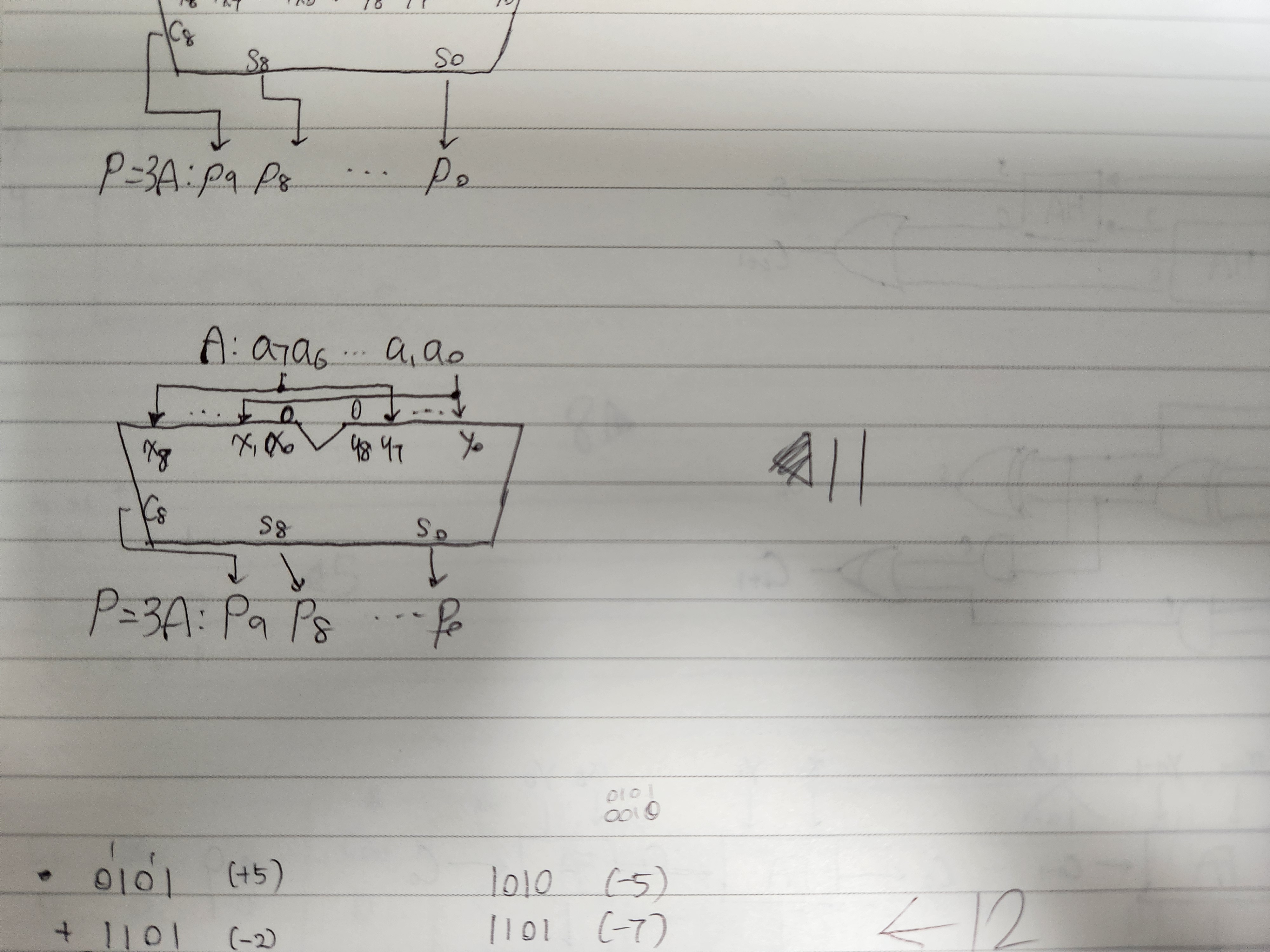 무부호 8비트 수 A = a7a6a5...a0이라고하고, 계산결과 P = p9p8p7...p0이라고하자.