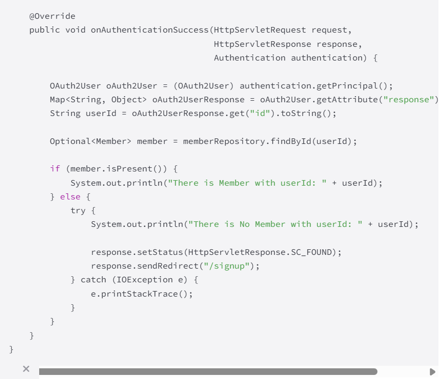 public class OAuth2SuccessHandler extends SimpleUrlAuthenticationSuccessHandler {