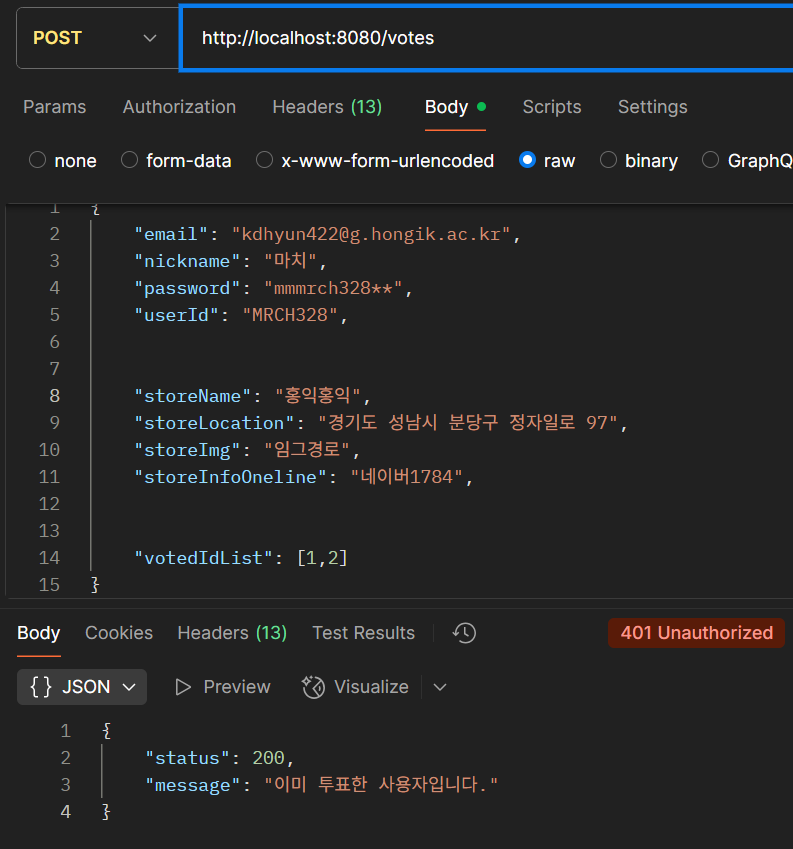 return ResponseEntity.status(HttpStatus.UNAUTHORIZED).body(storeForVoteResponseDTO);