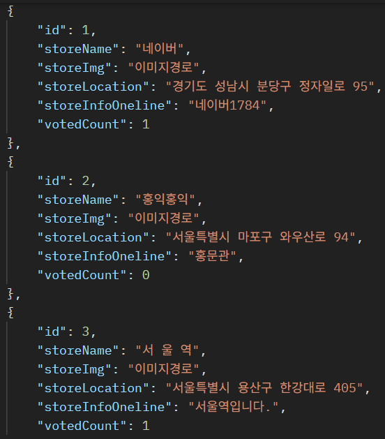 이렇게 STORE_FOR_VOTE DB에 점포가 등록되면 보여주기도한다.