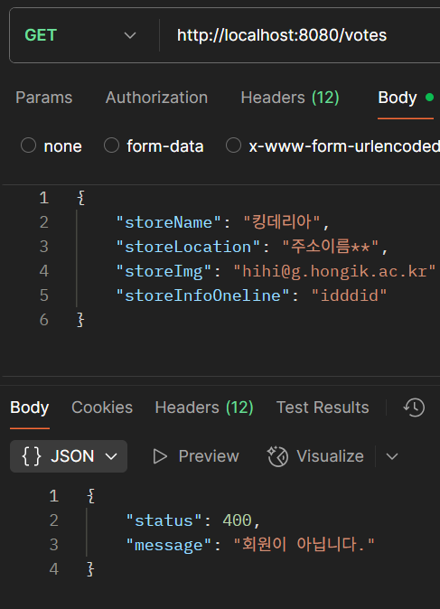public ResponseEntity<StoreForVoteResponseDTO> VoteService(String secret, HttpServletRequest request, voteRequstDTO voteRequestDTO) {