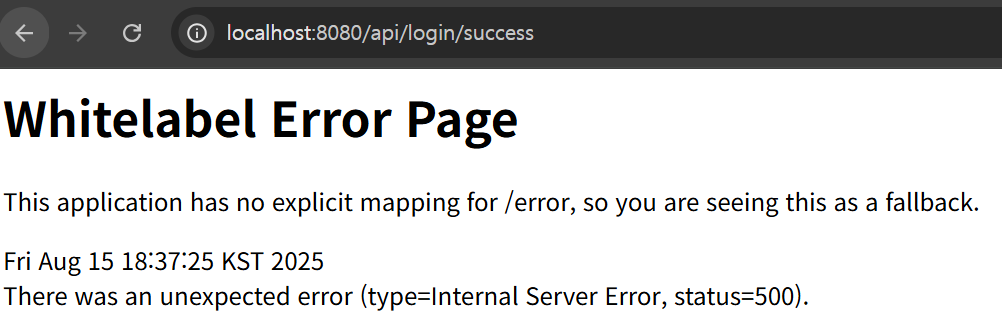 /api/login/1 이런식으로 접근했을 때 위의 사진처럼 api/login/success로 이동하면 성공한 것이다.