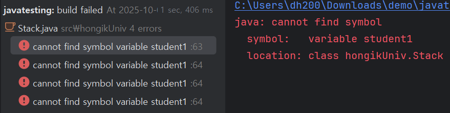 이렇게 조건문에서 지역변수를 선언하여 사용할 수도 있다. 다만 지역변수기 때문에 조건문 외에서는 사용할 수 없다. 여기서 Student student1 같은 변수는 instanceof 연산이 true일 경우에만 주어진 변수를 캐스팅한 임시로 사용하는 참조변수이다. false일 경우 변수가 선언되지 않는다.