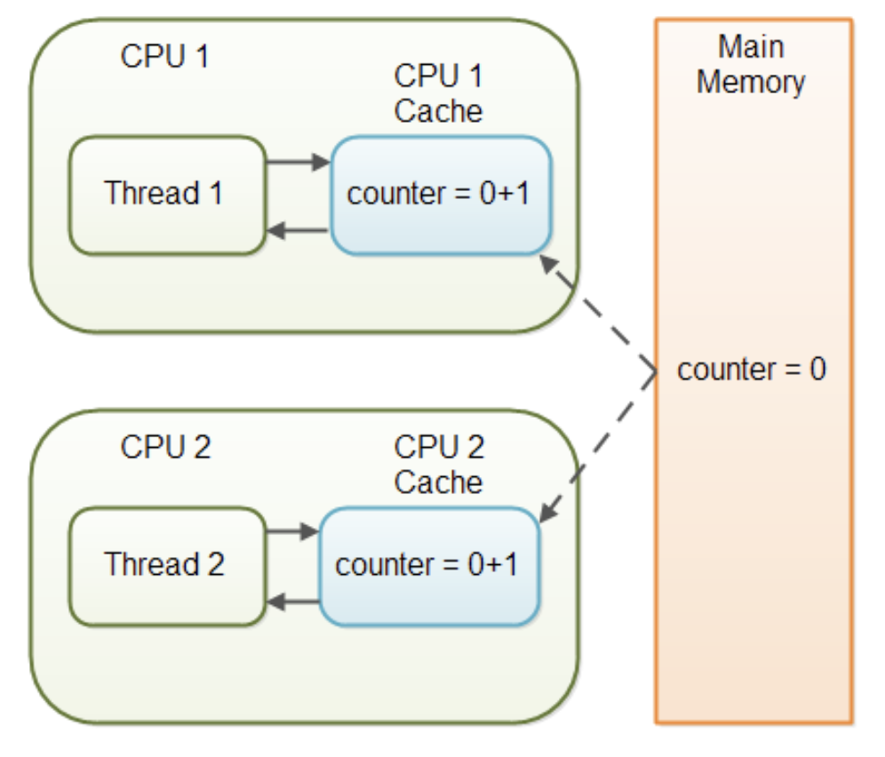 멀티코어 프로세서의 경우 메모리에서 값을 가져와 CPU 코어마다 캐시를 저장해두는데, 만약 메모리의 값이 변경되었음에도 캐시의 값이 변하지 않으면 메모리의 값과 실제 사용되는 값에 차이가 생긴다. 따라서 이를 방지하기 위해 volatile을 사용한다. 이것이 붙은 변수는 메모리에서 값을 읽어오기 때문에 값의 불일치가 해결된다.